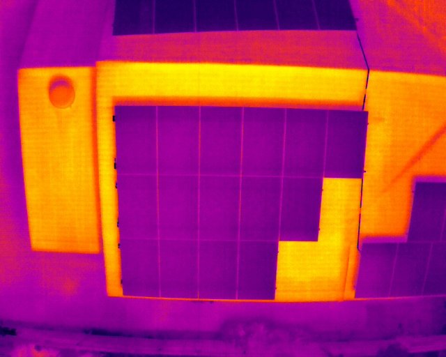 Compare the Image Above with this Thermographic Picture of Solar Panels with no Indication of Damaged Photovoltaic Cells.
